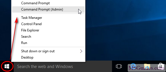 To open command prompt, right-click on the Windows button then select Command prompt (Admin)line.
