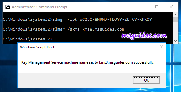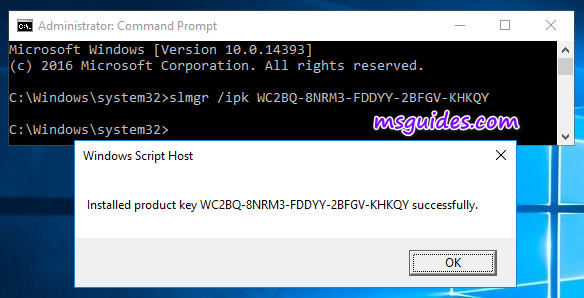 Then, enter slmgr /ipk CLIENTKEYin the command window.